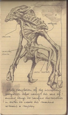 Die Alien Anatomie wird weitsgehend durch die Studien und Notizen von Dr. Earl Serrano, der seine Daten aus dem gefrorenen Körper eines ihrer Art und der unterirdischen Stadt, die die Terraforming Maschine beherbergt, beschrieben.