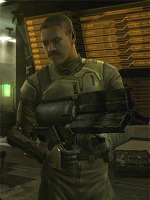 - Er ist nicht fähig, eine Waffe zu benutzen. Das kann man an einem zweiten Spieldurchgang demonstrieren. Wenn man im Raum mit der Sicherheitskonsole steht, kann man einen Entlüftungsschacht auf der linken Seite aufschießen; ein Nekromorph wird herauskriechen. Diesen kann man zwar dann in den Raum locken, in dem alle stehen, aber dann werden alle "so tun", als wäre der Nekromorph nicht da.