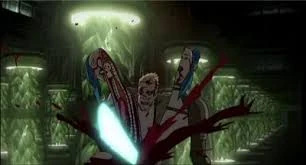 Hanson, influenciado por la Efigie, usando una sierra de plasma contra Shen.