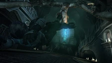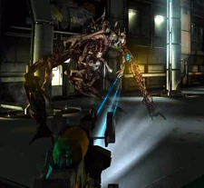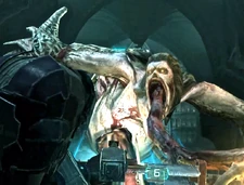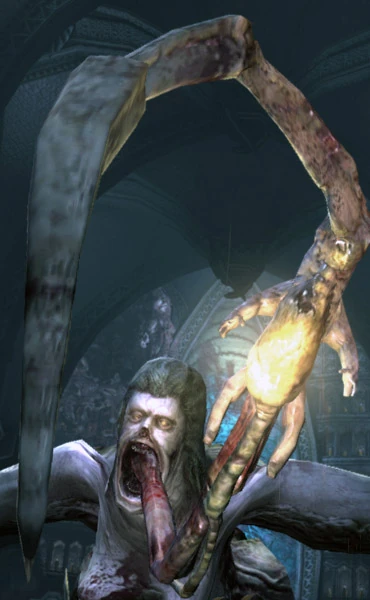 - Если Айзек не успеет отогнать женщину-треножника, она сначала отсечет ему правую руку, после чего ударит об стену, из-за чего у Айзека слетит шлем. Затем она вонзит свой язык-лезвие прямо ему в глотку.