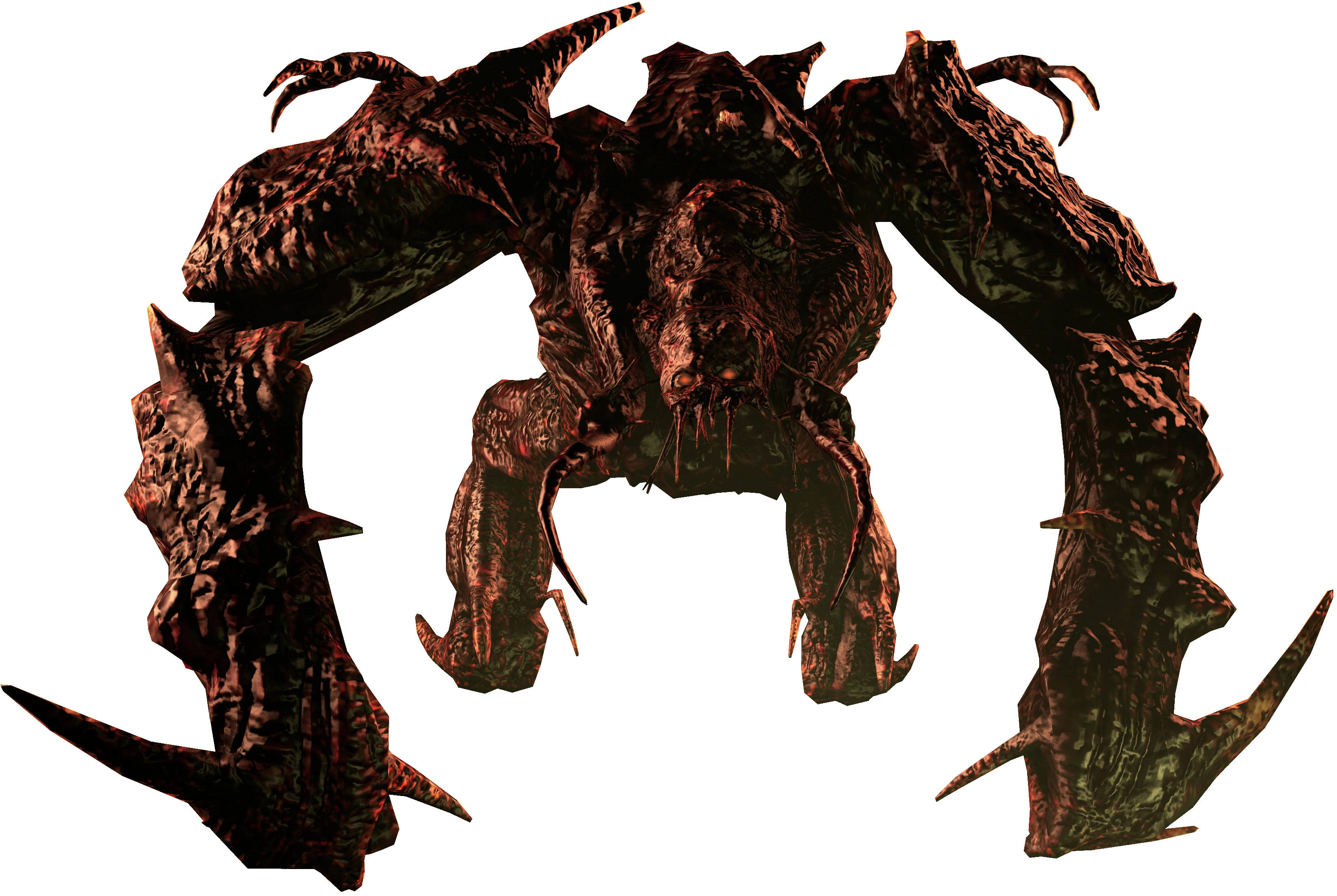 Normal variants of the Brutes are the most common ones to be encountered in the Dead Space games. They also get a slight appearance change in Dead Space 2, with their textures changed to be a bit darker and parts like the head being more symmetrical. Despite their size and strength, they can be easy to put down by targeting the yellow weakspots in the armpit or the back when the creature stops charging or retracts into a defensive ball.
