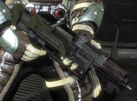 The S.C.A.F.'s Bullpup Rifle was wielded by Legionaries during their expedition on Tau Volantis. The Bullpup Rifle boasts a significantly higher rate of fire and rapid-firing accuracy compared to most other automatic weapons, which gives it an edge when it comes to engaging targets at range. Its mediocre damage is mitigated by its fast-automatic action, which enables it to quickly mow down anything short of an Alien Necromorph in a few shots.