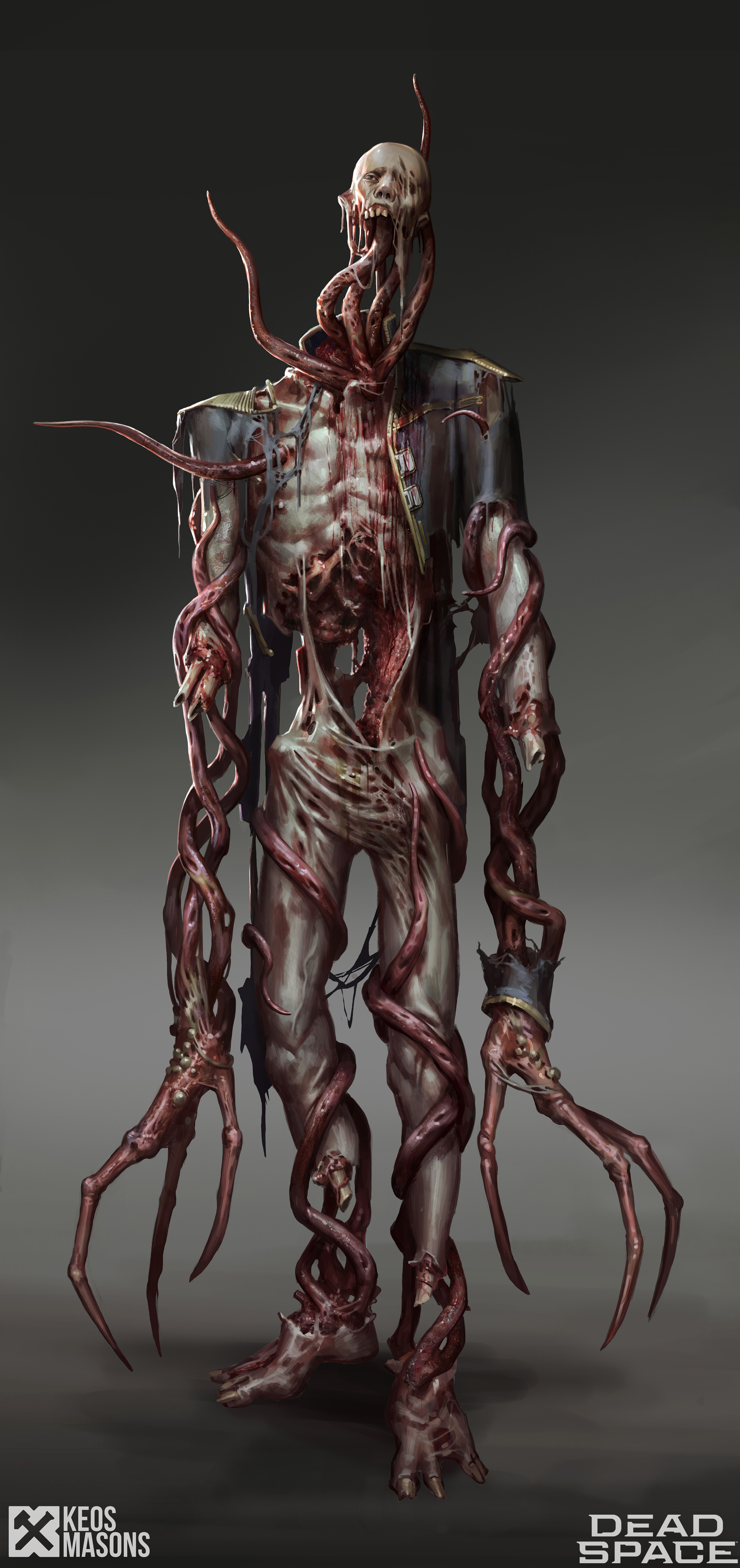 - According to the design team, the key idea of the Necromorphs is that they are made up entirely of human body parts: scythe arms were once the bones of the human host, tentacles are made up of a host's intestines, etc. The result is that the entirety of the Necromorph is comprised of re-purposed organic parts from a previous host or hosts. According to a 2010 article, the team studied medical, autopsy, and accident photos in order to recreate the effect of a ravaged human body;[23] however, The Art of Dead Space later stated that the tale of the developers studying real accident photos is something of a myth, and that the team instead bought and studied animal meat.