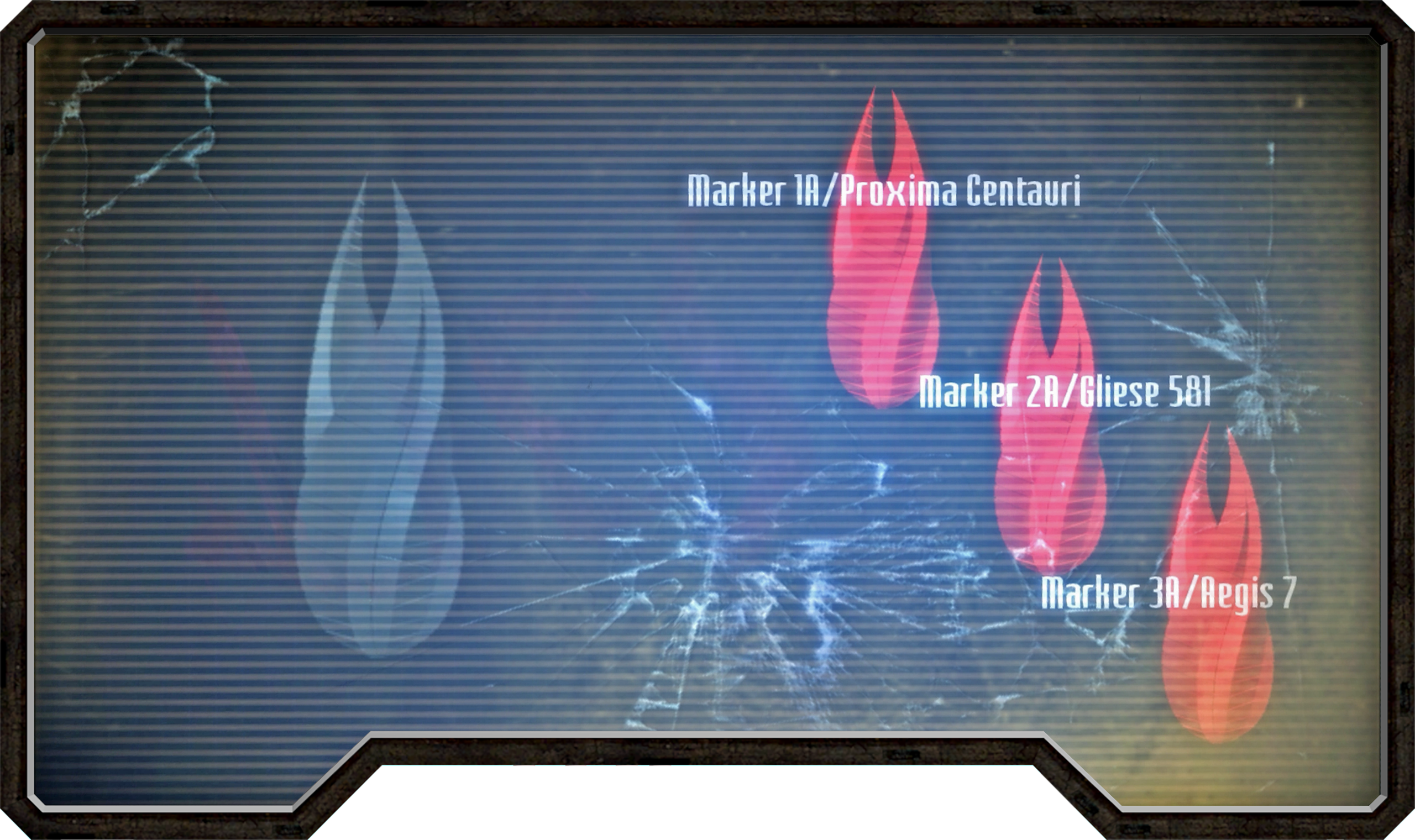 - "The Red Markers, sequestered safely away on distant star systems such as Aegis VII, Aspera and Proxima Centauri, among others, were themselves a mystery, as they were more grown than built. As the Red Markers were studied, it became clear they were receiving the signal they broadcast, rather than creating it themselves."