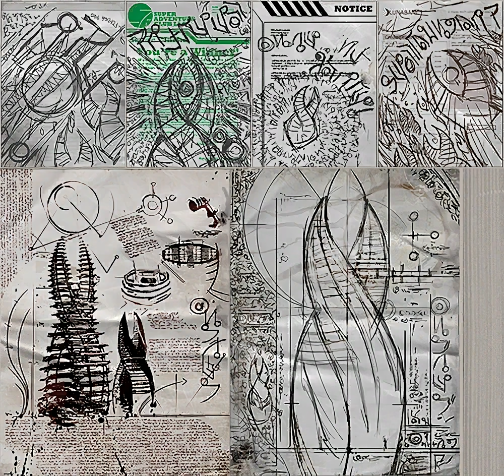 Blueprints and formulas for the creation of Red Markers scribbled by Isaac in his apartment on Luna.