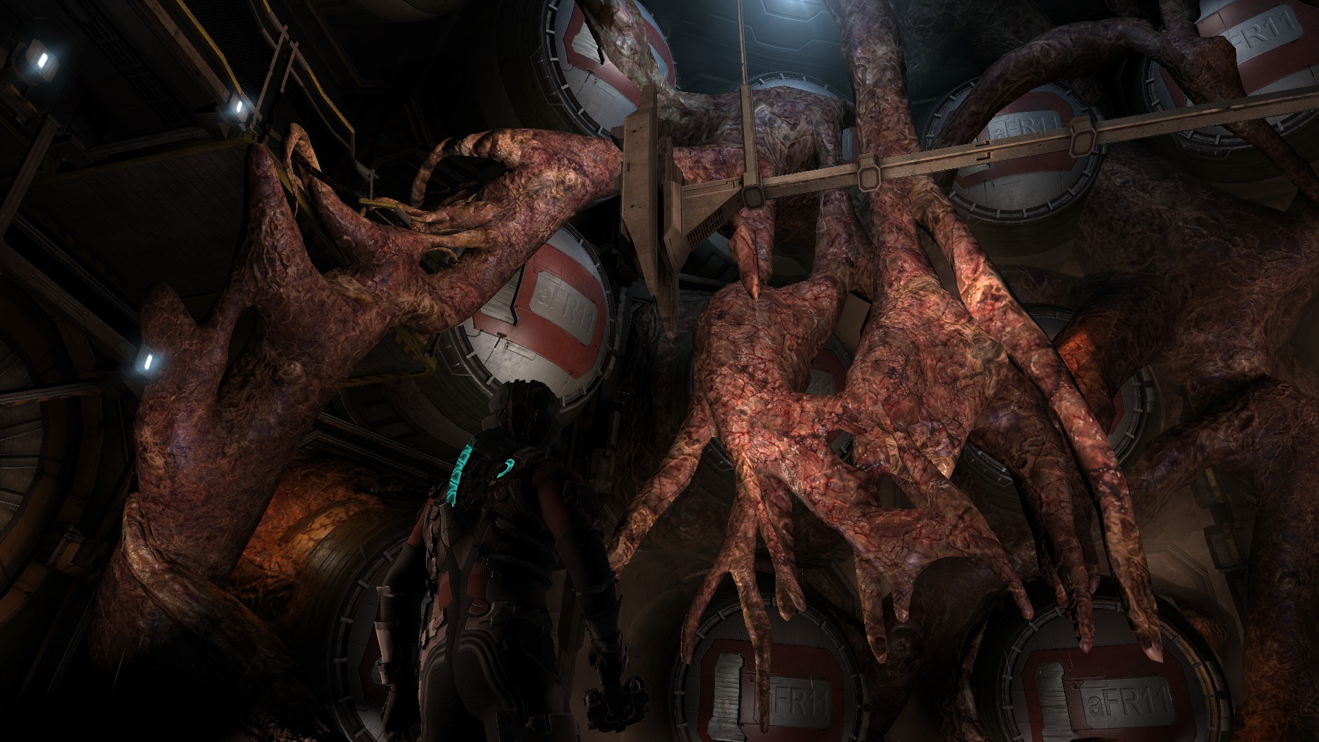 A growth of Corruption on the USG Ishimura with human remains visible.