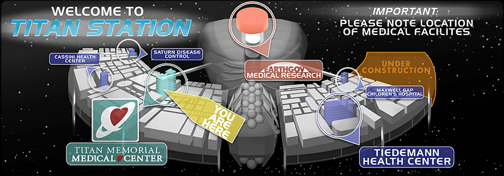 The Titan Memorial Medical Center was a medical facility located on Titan Station. Around 2508, EarthGov installed secretive laboratories in the psychiatric wing of the facility under the umbrella of Project Telomere.