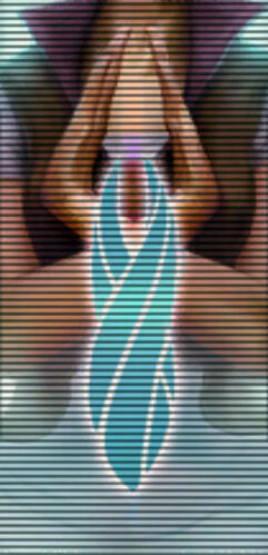 The Unitology locked arms meditative position demonstrated on a mural.